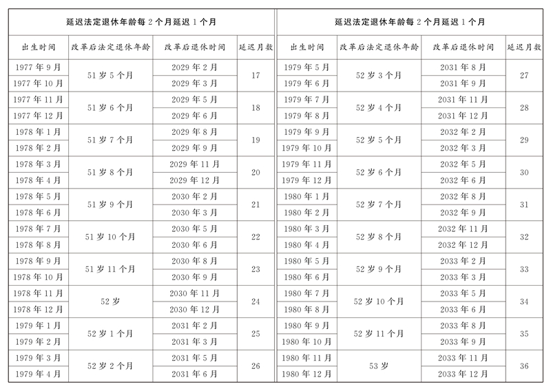 1.男职工延迟法定退休年龄对照表